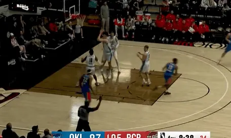 虎扑01月17日讯 G联赛,撕裂之城混音队对阵俄克拉荷马城蓝色队的比赛正在进行中。